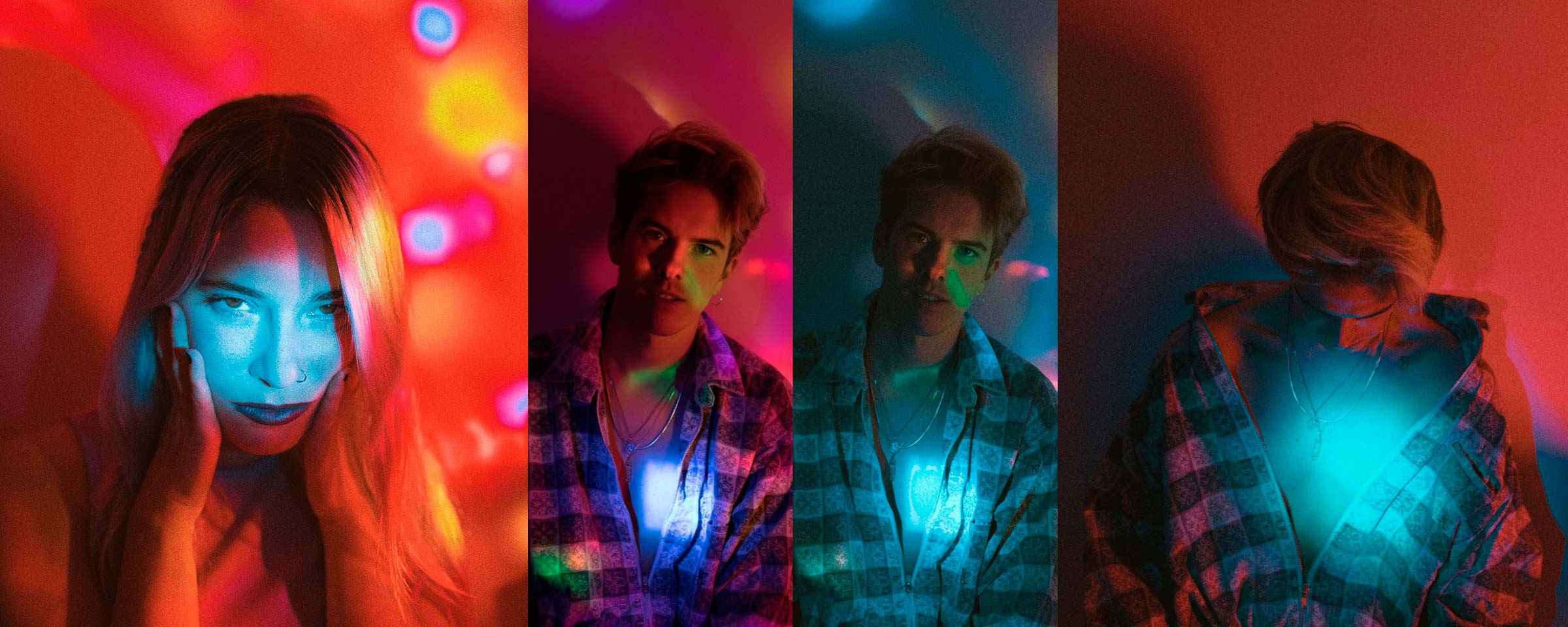 Para rellenar la escena y que no quede tan pobre de color pondremos algún color que complemente de fondo. En mi caso, he usado el azul en la linterna así que decidí optar por un neón rosa que tenía en casa. De esta manera, aunque predominase el azul en las zonas que quería focalizar no perdería los otros colores. También valdría una luz tipo discoteca, una lámpara con un pañuelo de color encima... Todo es probar.